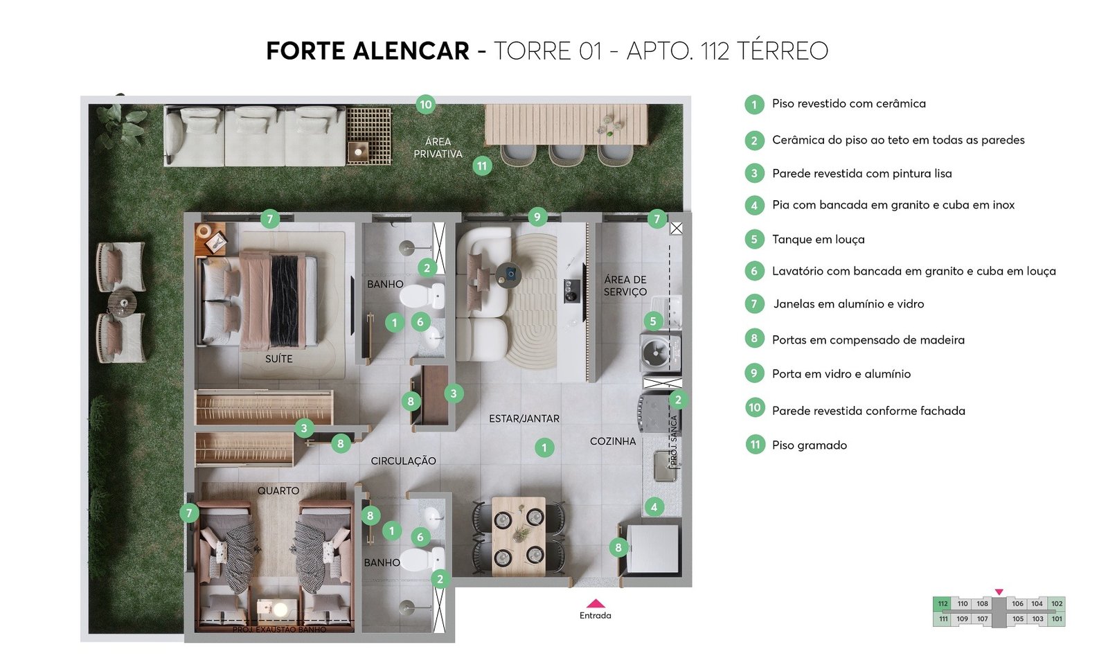 Unidades no térreo com área privativa, perfeitas para quem busca um espaço externo exclusivo .