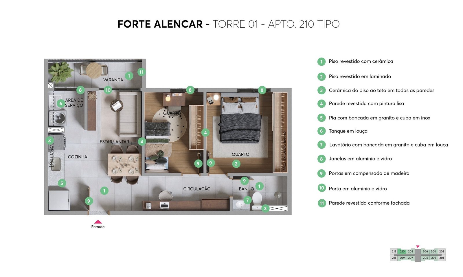 * O preço exibido nesta página é o menor da tabela de vendas do mês, por tipologia, cada apartamento em um empreendimento específico tem valores diferentes.. Quando exibido em https://fortalimoveis.com.br/, o preço exibido pode não estar mais em vigor, pois a Construtora ou Incorporadora ou Imobiliária ou proprietario podem alterar os preços dos imóveis a qualquer momento sem prévio aviso. É necessário também verificar a disponibilidade dos imóveis para comercialização diretamente com corretores, pois a unidade pode não mais estar à venda. As despesas cartorárias de escritura e registro, bem como as relacionadas ao financiamento, além do ITBI, não estão incluídas no preço do site e serão de exclusiva responsabilidade do adquirente. Para maiores detalhes, consulte sempre um corretor. Todas as imagens utilizadas neste material de imóveis na planta são meramente ilustrativas, não fazendo parte de nenhuma oferta de produto ou serviço. Possíveis alterações de projeto serão executadas de acordo com o memorial descritivo do empreendimento à venda. No caso de fotos de imóveis decorados, perspectivas artísticas e plantas com sugestão de decoração, os revestimentos a serem utilizados na construção estão especificados no memorial descritivo. Os móveis e equipamentos têm dimensões comerciais. Objetos de decoração, pisos, rodapés, louças, metais, molduras, forros e sancas de gesso e pontos de iluminação são sugestões de decoração, não fazendo parte do contrato de aquisição, nem de qualquer oferta de produto ou serviço. A contratação de serviços de uso comum, caso citadas neste material, depende de decisão dos condôminos em reunião condominial, que tem poder de não aderir aos serviços ou cancelar serviços previamente oferecidos. Com relação aos diferenciais citados, nem todos os diferenciais anunciados se aplicam a todas as unidades autônomas, ainda que de igual tipologia. Para informações adicionais, consulte o memorial descritivo e um corretor de imóveis.