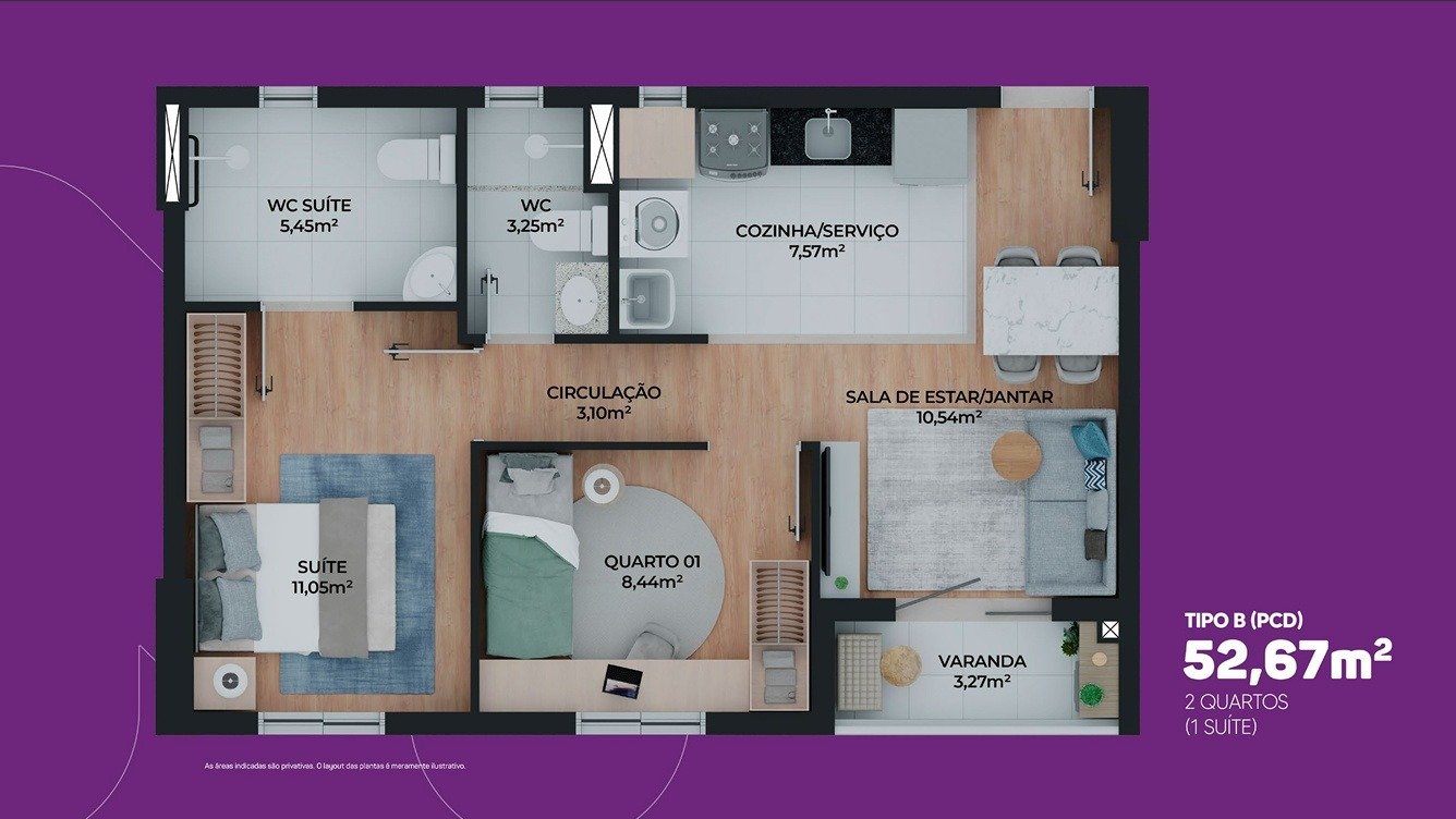 Os apartamentos foram projetados para unir modernidade, conforto e praticidade, atendendo diferentes estilos de vida.