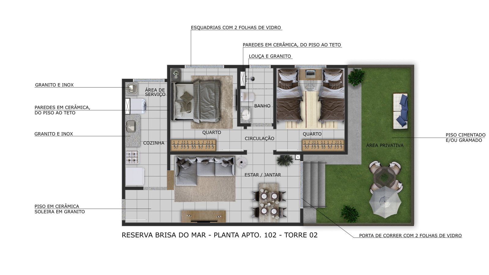 - 2 quartos com varanda – 46,74 m²